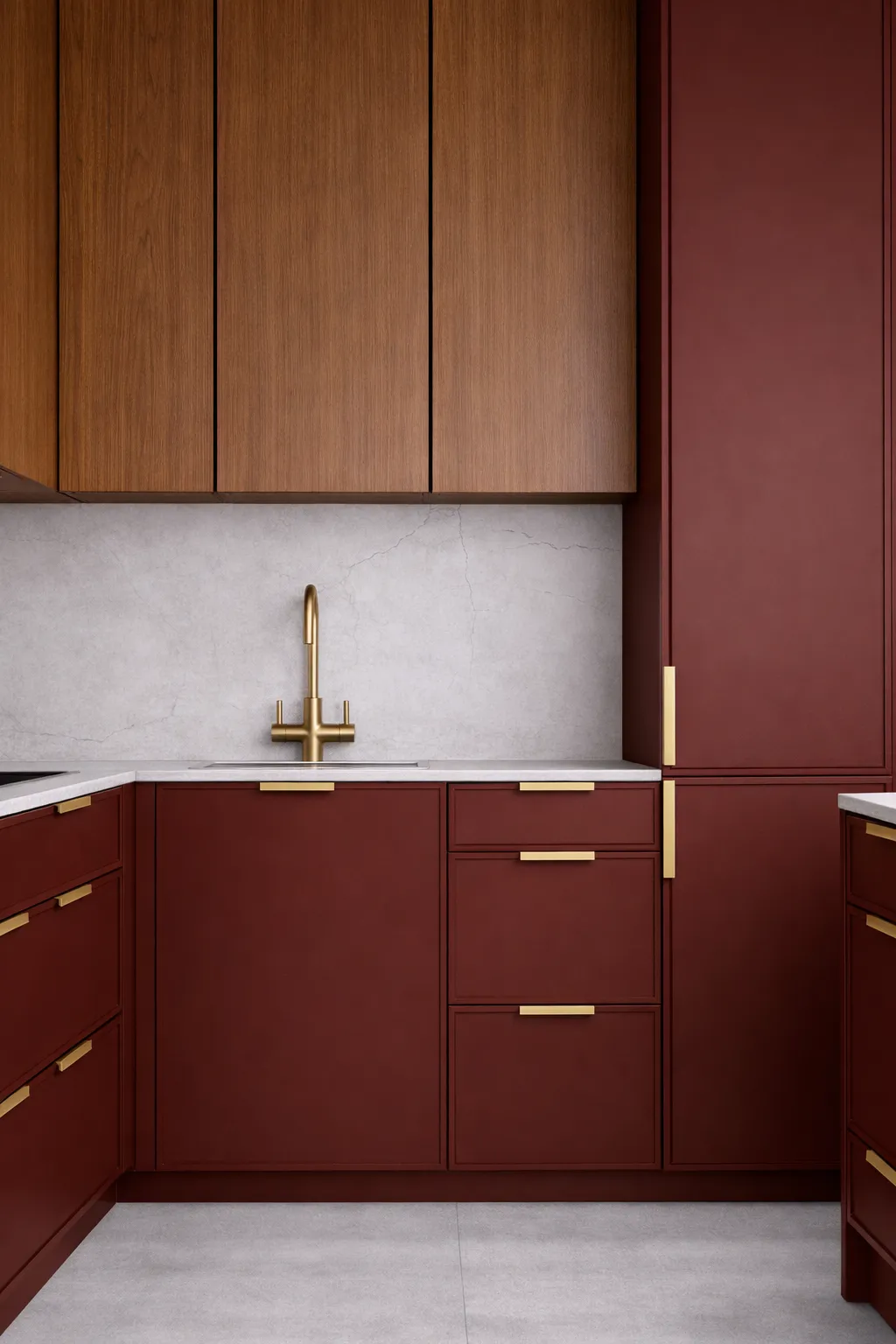 Popular materials for custom cabinet doors include painted MDF, natural wood veneer, and solid wood. These materials provide durability while allowing different colors and modern kitchen designs.